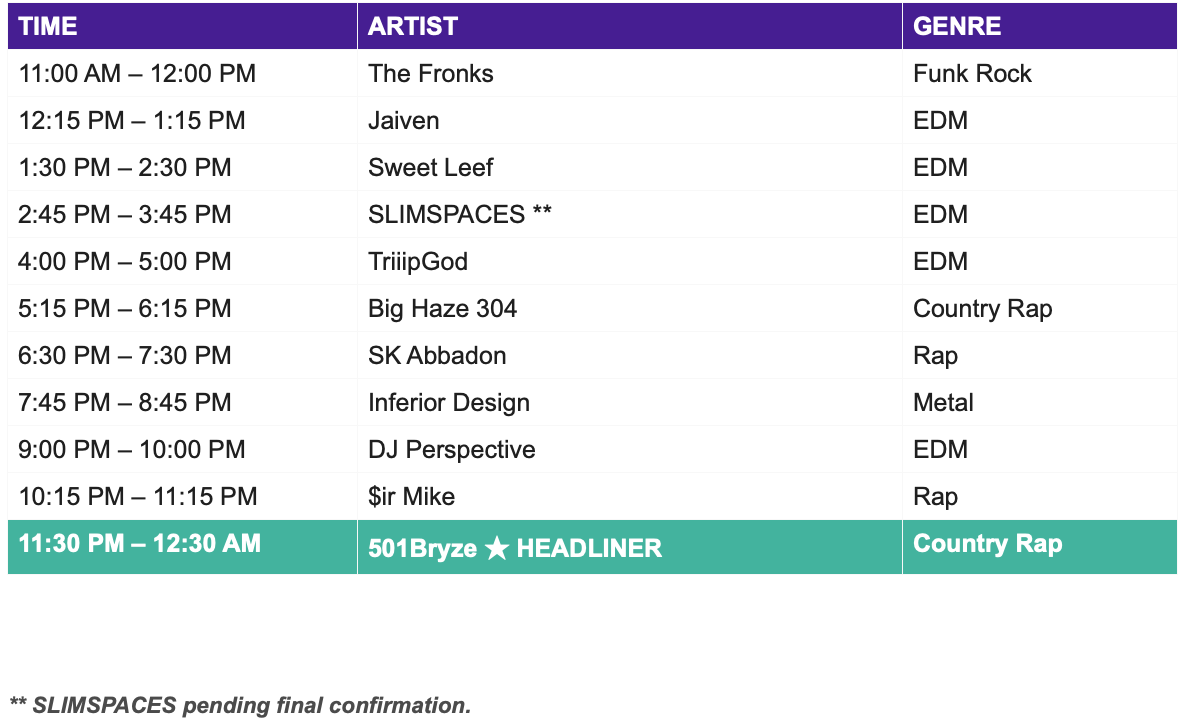 Schedule subject to change. Check 333musicandarts.com for the latest updates.